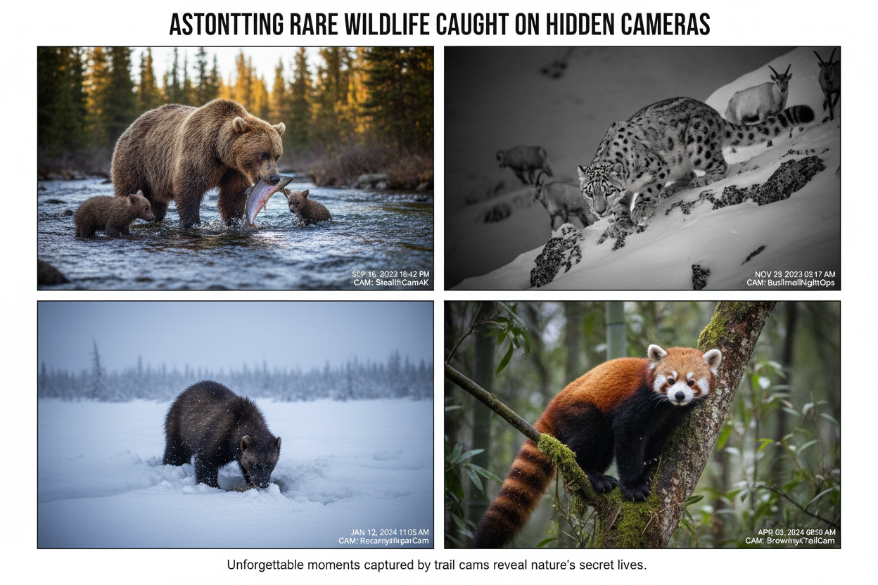 Countless astonishing and rare wildlife moments have been caught on camera, providing glimpses into the secret lives of animals. For example, trail cams have captured unique animal behaviors such as a mother bear teaching her cubs to fish, a snow leopard stalking its prey in the Himalayas, and seldom-seen species like the elusive wolverine foraging in the Arctic. These unexpected wildlife encounters offer valuable data for researchers and inspire awe and appreciation for the natural world.